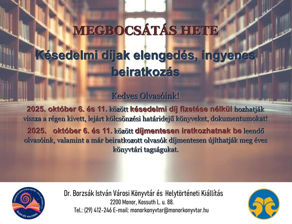 "Megbocsátás hete" - késedelmi díjak elengedése, ingyenes beiratkozás 2025. október 6-11.
